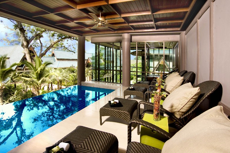 Exotic aromas entice the visitor inside to indulge in a pampering session, maybe on the spa's water terrace, which is so tranquil it seems almost to be suspended in animation, just as it is suspended in the jungle, amid large fan palms and towering coconut trees.