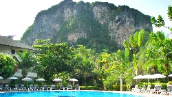 The view from the pool of the magnificent karst mountains separating Ao Nang from the Railay peninsula is as breath-taking as is the sea view from the resort's massage pavilion, seafront bar and restaurant.