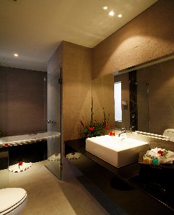 If you're somone who finds the sight and sound of running water conducive to holiday relaxation, then the Peace Laguna has much to commend it, for water burbles and trickles almost everywhere in this impressive and stylish resort. The aquatic focus starts immediately upon arrival in the area preceding the lobby, where a bridge spans a small pond beautifully stocked with water lillies.