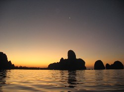 While big fish like sailfish are uncommon, king mackrell and various species of trevally are not. A major part of the appeal of this trip is watching the sunset from aboard a boat in Phang Nga bay. Click here for more. |