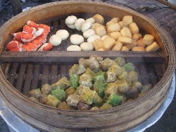 The small, white, round pastries at the back of the picture are filled with soft meat and gravy, and are particularly delicious. For a wider selection, go to one of Thailand’s ubiquitous dim sum restaurants for breakfast. Arrive before 10 am, and eat your fill for about THB 100. |