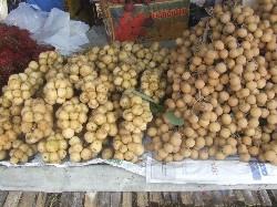 The fruit on the left is called ‘long gong’ and the one on the right is called ‘lam yai’. Long gong is a tremendous treat for the taste buds, but beware – after spending your holiday snacking on Long gong and mango, the apples and pears back home just won’t taste the same. Lam yai is a sweet fruit with a big black stone. Don’t eat too much, as it reputedly makes you hot inside, and is especially to be avoided if you have a fever. |