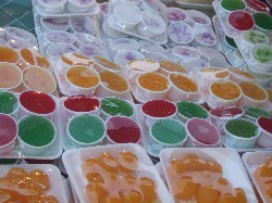 These sweet (some would say sickly) desserts are made from flower and sugar, with lots of artificial ingredients added. They are not the healthiest snacks in the market, so Western children love them as much as Thai kids do. |