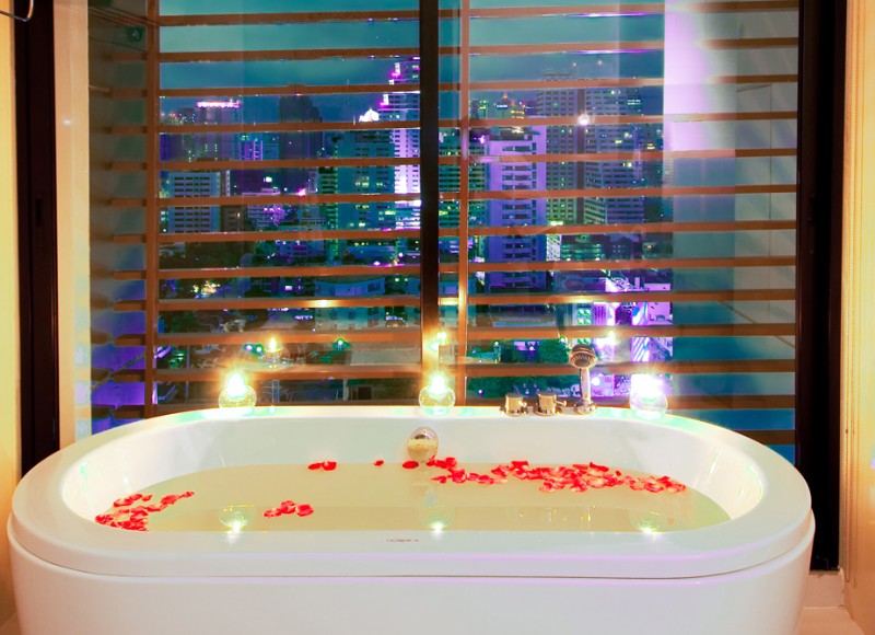 The 7 foot bed and sexy bathroom will please honeymooners. These sexy bathrooms are the latest trend in Bangkok hotels, and most new and renovated hotels are getting them.