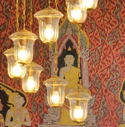 In the lobby, Thai decor, paintings and statues are pleasantly complemented by the lush foliage with which the lobby is surrounded, and which fills the view out from the windows.