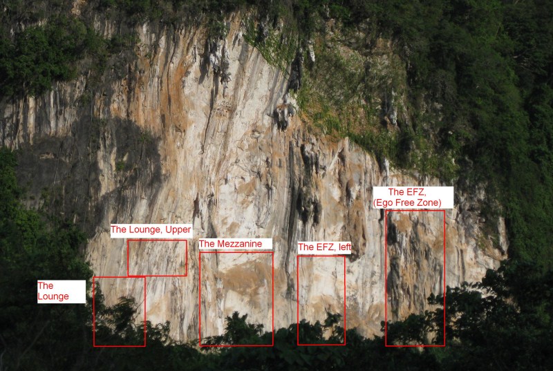 Ao Nang is the newest and most exciting climbing destination in Thailand. There are a few other unimportant crags, but the main attraction for climbers is the Spirit Mountain crag. This crag has been under development for two years and has recently started to earn a reputation as the best single crag in the country.