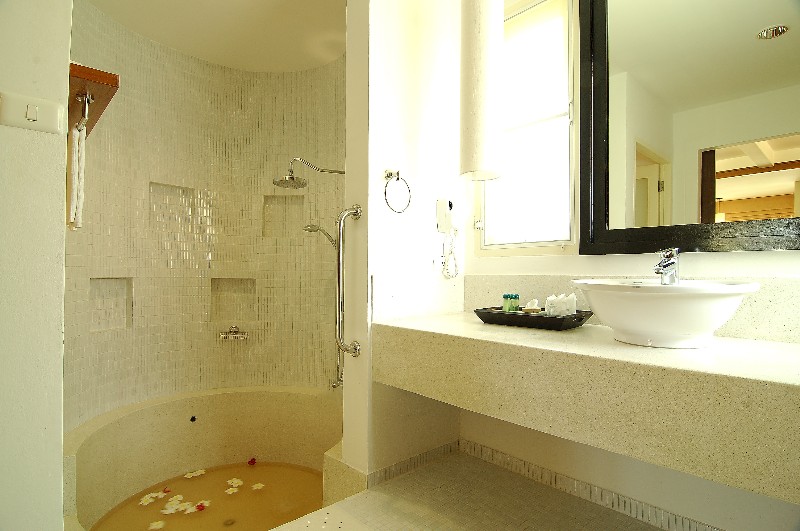 These are similar to the ‘Beachfront Villas’, except that each features a circular combination bath/shower, which surely poses all sorts of fun permutations for the many honeymooners who are these villa’s frequent occupants.