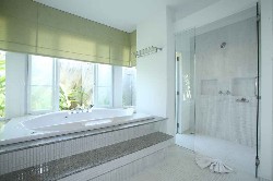 With polished hardwood floors and wall panels, these rooms will impress all but the most blasé of eyes. Each features a large window alcove to the front, overlooking the beach, with large windows on three sides and containing two Thai-style loungers – the perfect place for a game of backgammon – or for games of a more romantic nature. Each villa’s bathroom is as well-appointed as is its bedroom, with a tub and two showers, one indoor and one outdoor. These villas are highly recommended for romantic breaks.