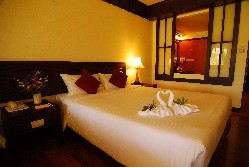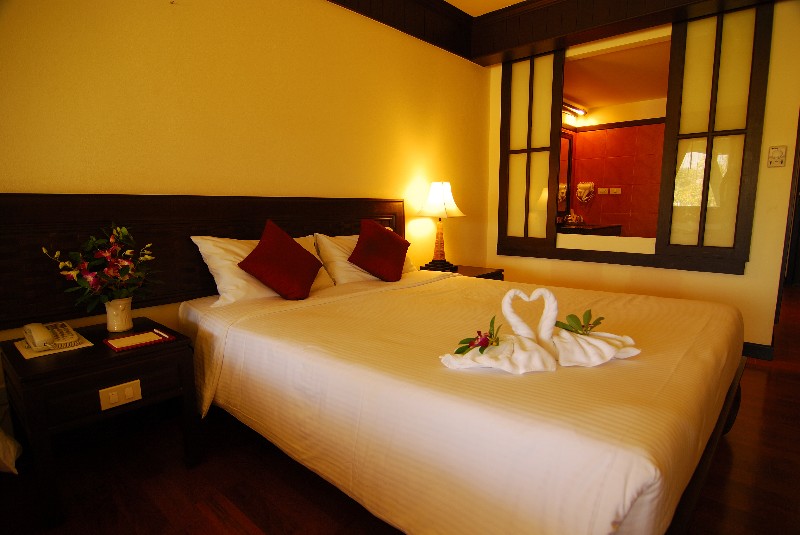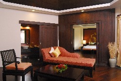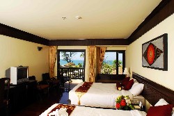 The ground and first floor roooms have no significant seaview, but the 2nd floor rooms do. Wooden floors and complementing pastel hues make these very tastefully decorated rooms. The two queen-sized beds make these rooms an option for families, but not one that will give parents any moments of privacy. For families with older children, better options exist in Khao Lak.