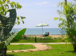 The bungalows are older than the ‘Standard’ and ‘Family’ rooms, and look it. The bungalows have open air showers, but not very nice ones. Their bathrooms are better, but the overall impression these bungalows leave is of uninspiring décor and fading charm. The bungalows further from the beach have TVs, whilst the ones nearer to the beach do not.