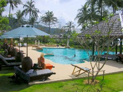 These are not just two connecting rooms, but purpose-built family suites. Each has a large double room and a large twin room, with an extra bed and an extra cot possible. The bedrooms share an enormous bathroom and each have a DVD player and TV. The only downside with these rooms is that their windows are fronted by vegetation that blocks out the light and makes them a bit dark. Most families, however, will spend most of their days out doors, so this is not a significant drawback. Teenagers will enjoy watching DVD’s and playing on their games computers, and they won’t care about the lack of natural light. The décor in the family rooms is better then in the ‘Standard’ rooms and the prices are reasonable, making these family rooms the best mid-range family accommodation option in Khao Lak.
