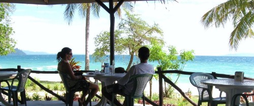 These bamboo bungalows won't wow anybody, but are in reasonable condition and, if the visitor can overlook the signs of wear in the bathroom, a reasonable choice. The best beachfront bungalow is the northernmost one, but not by much, as they all offer similar views and privacy.