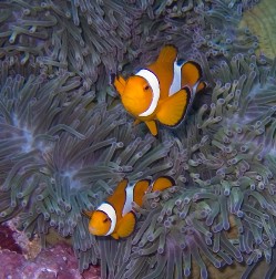 It is home to the biggest nemos we've ever seen (see image above), and to a fair few of nemo's clownfish cousins too, all nervously scuttling in and out of their anemome homes, wary lest they become lunch to another reef-dweller. |