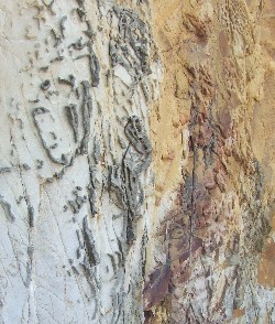 The beach is as sweet a spot as can be imagined for lunch. The rocks here are gorgeously coloured, and have been eroded into unusual shapes which resemble heiroglyphics etched out of the stones, with the heiroglyphs standing proud of the different coloured rock beneath. See the image above. |