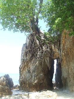 The beach here is great for swimming for people of all ages and at all times of day, but the snorkelling isn't so great. The beach is very sandy and broad, and lots of the sand swirls around underwater, creating visibility problems. There is a lovely viewpoint over the Andaman Sea, which is pictured on the left. |