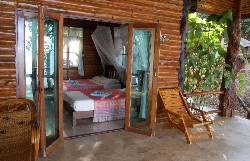 There are 15 bungalows ranging up the hillside from the beach. Number 7 is possibly the pick of the bunch with a huge verandah and a great sea view. The rooms have comfortable beds, are well-equipped and are kept immaculately clean. Whilst the bathrooms currently lack hot water, this is set to change when mains electricity is connected. |
