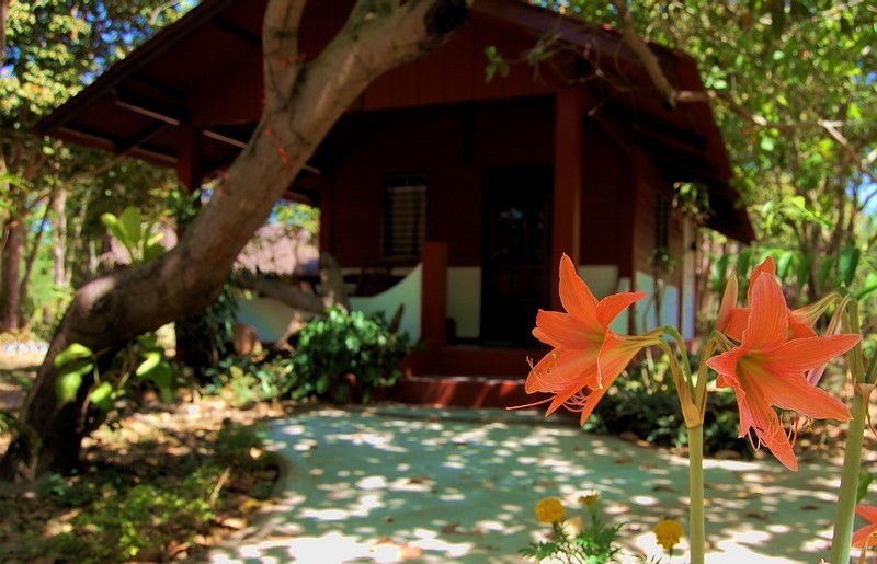 The bungalows are very, very quiet. With their tiled bathrooms, large beds, thatched roofs and comfortable porches, these bungalows are some of the best bargains on Koh Jum.