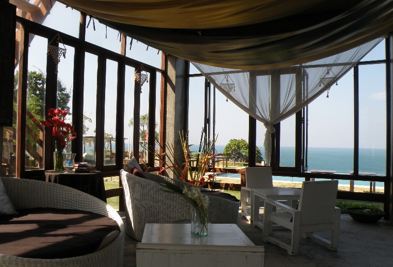 The room with the best sea-view is the northernmost one, which is also the one nearest the pool and bar.