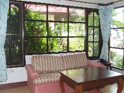 These are the same as the becahfront villas, except that they don't have big sea-views. Some of them have small but still just worthwhile sea-views, while the others have no sea-view at all. If you would like a bungalow with a sea-view, contact us. Some of these villas are located next to the pool, so are good for families with small children., others are located up the hillside, and offer more privacy.