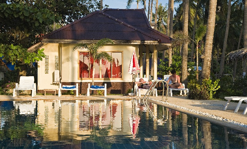 These are an exellent choice for those for like an immaculate concrete bungalow (who wants those bugs that bamboo bungalows let in anyway?), but want to stay at a resort with rustic Thai architecture in the resort’s communal areas.