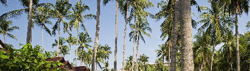 If you're a fan of coconut trees you'll love the Moonwalk. None of the resorts on this stretch of Klong Kong beach has laid a finger or a chainsaw on any of the grove of lofty palm that tower above and all round the Moonwalk, donating welcome shade as well as considerably enhancing the atmosphere. The grove is particularly beautiful in a light breeze on a starry night, when the coconut palms sway with a stately grace that nonone can fail to appreciate, and are set against a backdrop of stars on an inky black clear sky.