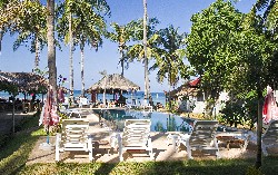 A great spot to take in the atmosphere of the coconut tree grove is the resort's beachfront relaxation hut, which is covered in large cushions and where the only 'walls' are dangling lines of seashells. Guest can also enjoy the sound of the waves lapping the shore, and thoroughly relax - maybe after a couple of hours' indolence gives way to itchy feet, take a couple of steps, and jump in the pool.