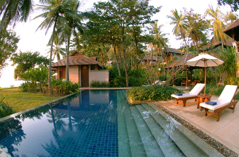 These are built in an L-shaped design around a pool, with a bedroom and a living room on either side of the pool. The living room contains an oversized day-bed and exhibits all the standard Pimalai style, grace and oriental allure. The bedroom is an essay in understated opulence. These units offer lots of places to get comfortable, and are popular with honeymooners.