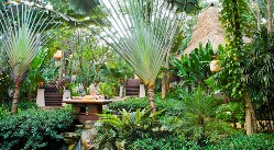 The very first impression sets the naturally stylish tone - a central pond is surrounded by four mature frangipani trees, which shed their petals onto the pond's surface, creating an archetypical Thai scene.