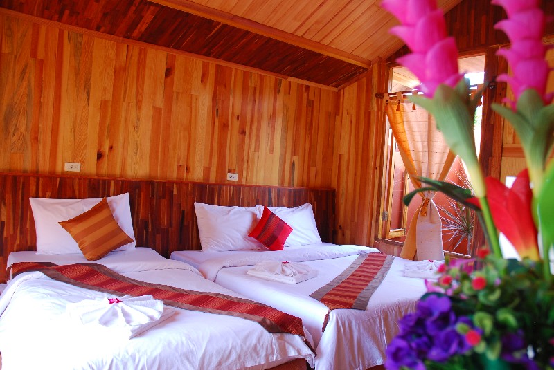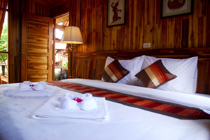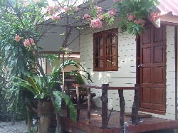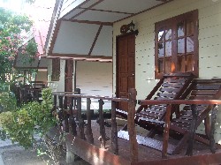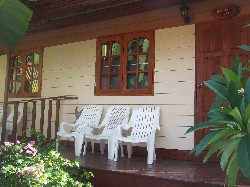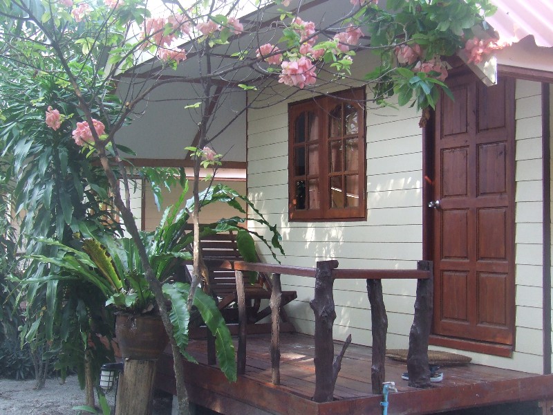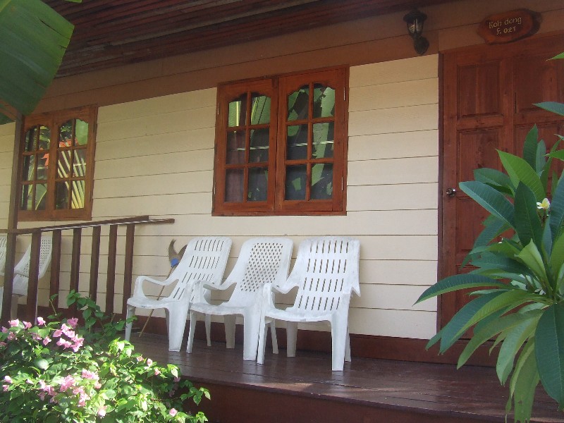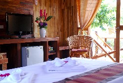 These bungalow, while clean, are basically decorated and furnished, and won’t wow anybody. They are however a clean and affordable choice for those visitors who want air-con. They are located in 2 rows of rather densely-packed units, with zero privacy on their small terraces.