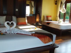 Why did they make this name so long? Was is to bore people rigid or to give travel writers' fingers Repetitive Stress Injury? OK, I guess that's enough moaning (I really have nothing to complain about, as I am lucky enough to be staying here at Sivalai at the moment). These units are located on the south side of the sand spit so don't offer swimming directly in front of the bungalows, but this really isn't a big deal, as the best swimming off the end of the sandspit is only a few metres away. An extra bed can be comfortably added, plus a child less than 12 can share the master bed.