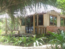 This tiny resort occupies its own beach and faces west, so gets great sunsets. The accommodation is set back 20 metres from the beach, with the gap in between occupied by exotic tropical trees.