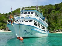 Angel OneAngel One is a newly rebuild liveaboard with modern diving and navigation equipment. It is a 25 meter long and 5_ meter wide vessel able to operate offshore under any weather conditions. With a 450 hp marine diesel engine, it reaches a cruising speed of 12 knots. Two brand new Coltri Sub Scuba compressors along with new Mares rental equipment ensure that diving will be safe and enjoyable. The lower deck contains the galley, two head/shower combinations, accommodation for 12 guests, a staff quarter, and a comfortable salon with sofa, TV, video, and stereo system. The upper deck is equipped with a covered dining area and a huge sundeck. The safety equipment includes 100% pure oxygen, first aid kit, life jackets, CB radio, GPS, sounder and fire extinguisher. DAILY TRANSFER to the boat from Tap Lamu.