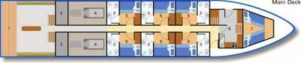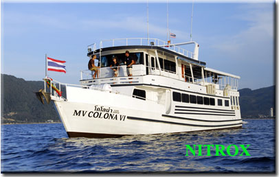 The Colona 6 was built in 2000 to be one of the most comfortable live-aboard vessels in Thailand. Included in our price is accommodation in one of the seven twin and double cabins, which have large panoramic windows, air-conditioning and private bathrooms.