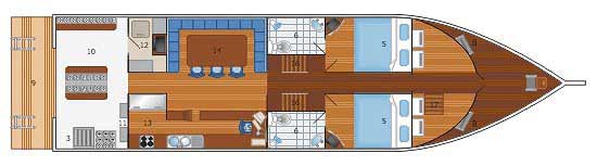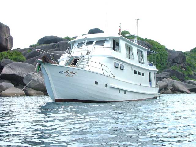 Aboard Le Mahe, rebuilt in 2002, cruising from Phuket with 12 guests in 6 double and twin air conditioned cabins, all with private bathrooms, you can enjoy the beauty and fantastic diving in the Similan and Surin Islands, and sleep in comfort. This is not a big boat, but the cabins and facilities make up for the lack of size. No other boat of this price has en suite cabins. Included in our price is a double or twin en-suite cabin with air-con.