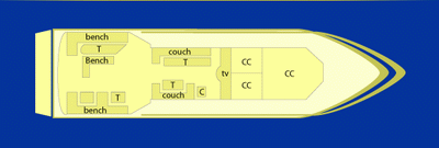 M/V Marco Polo is a large 25 meter x 7 meter wooden dive boat with two decks. The upper deck supports the captain's cabin and a large sun deck where people can relax and enjoy themselves. The lower deck has eight double cabins, each one with a double bed (lower) and a single bed (upper), with individual lights and windows. We have two toilets/showers with wash basins. There is a double entry/exit dive station at the stern, with two shower systems which make for easy access. Our 35 tanks are retained upright so that BCD and regulators can be fixed to them. Everything is ready for you to enjoy beautiful diving!