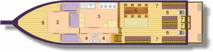 M/V Seafarer is a comfortable live-aboard wood and steel dive vessel. She may accommodate up to 14 passengers: 6 in three 'VIP' A/C private cabins (two single berths) and 8 in two 'FIRST CLASS' A/C cabins (four single berths). Each cabin has 2 or 4 single berths with standard mattresses (200x90). As most of our customer's book 'VIP passenger' cabins, most of our cruises have a maximum of 8-12 guests which enable a better service. She has two showers/toilets. The decks are wide and spacious to provide guests with a maximum diving convenience and tropical living.