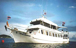 The MV Vilai Samut explores the Similan Islands, Surin, the Burma Banks, the Mergui Archipelago, Hin Daeng and Hin Muang. She is equipped to carry 22 passengers and an 8 man crew. It is fully equipped and stocked to make sure you enjoy the whole trip. The ship contains 6 air conditioned cabins, large diving area and ample shower facilities allowing you to dive and relax in complete comfort.