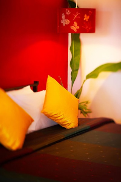 The restaurant is stylish decorated if a bit gloomy. The breakfast bread is the white sweet stuff, but if you book with us then, in addition to giving you a hopefully unbeatable price, we will deliver a fresh brown or wholegrain bakery loaf to you on arrival, which you can then get the staff to serve to you in place of the bread provided. For lunch the restaurant is OK for a club sandwich or some simple Thai food, but most guests eat out in the evening, at one of Ao Nang many excellent restaurants – click here for a restaurant/nightlife/amenities map.