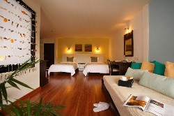 There are only two of these superb suites in the hotel. They have fabulous sea-views right from the bed and are well-appointed, clean and tastefully decorated. A great choice for a couple, whether on honeymoon or not, these rooms are highly recommended. These rooms are the best things about this hotel. |