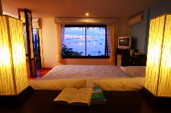 The Phra Nang Inn hotel is located on the beach at the corner of Ao Nang’s two biggest shopping streets. Click here for a map. The lobby is at the street corner, so you can’t hear any traffic in the rooms, only the sound of the waves.