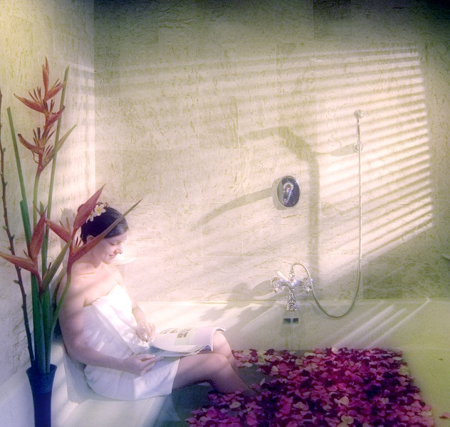 In all the rooms the decor is extremely tasteful and elegant. The large outdoor bathrooms, with their huge rainfall showerheads and copper vessel sinks decorated by beautiful vegetation, are particularly appealing. Bring bug spray, because there are mosquitoes aplenty here. The well air-conditioned bungalows come with adorable mosquito nets, which add to their romantic atmosphere but can’t guarantee complete immunity from being bitten. Most guests get bitten on the outdoor toilet - whilst many guests will feel it’s worth a few bites to stay at such a lovely place, others won’t.