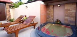 These superb bungalows, reached by sweet little bridges over koi carp ponds, are great honeymoon options. Completely surrounded by high walls, there is no reason for love-birds to ever get dressed.