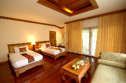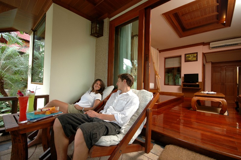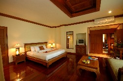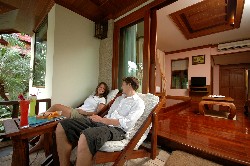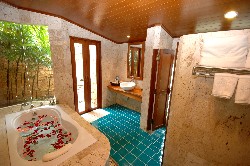These larger villas are ideal for honeymooners. In addition to all the facilities of the tropical Villas described above, they offer newly-weds various interesting spots for romance - besides the over-sized bed, there is a large chaise longue, a bathtub and a lovely outdoor shower complete with tropical shrubbery and trees festooned with orchids.