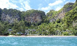 The visitor arrives at the Centara by sea and, for most, the first impression is of awe at the magnficence of the resort's setting, nestling on its own beach and backed by towering karst cliffs rearing majestically skywards.