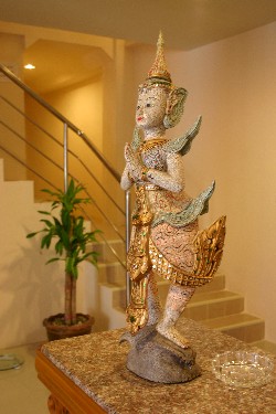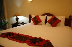 As is the case with its neighboring hotel the Pranang Flora House, the rooms to the front of the hotels have a great view of the karst buttresses that separate Railay from Ao Nang, but are a little bit noisy, so if you are unaccustomed to any traffic noise when you sleep, probably not a good choice. The rooms at the back are quiet, but have no view. All have air/con.