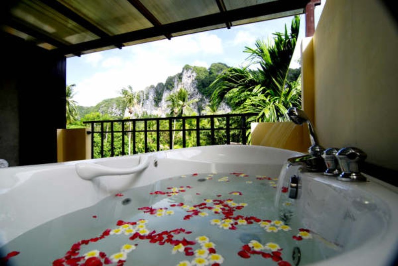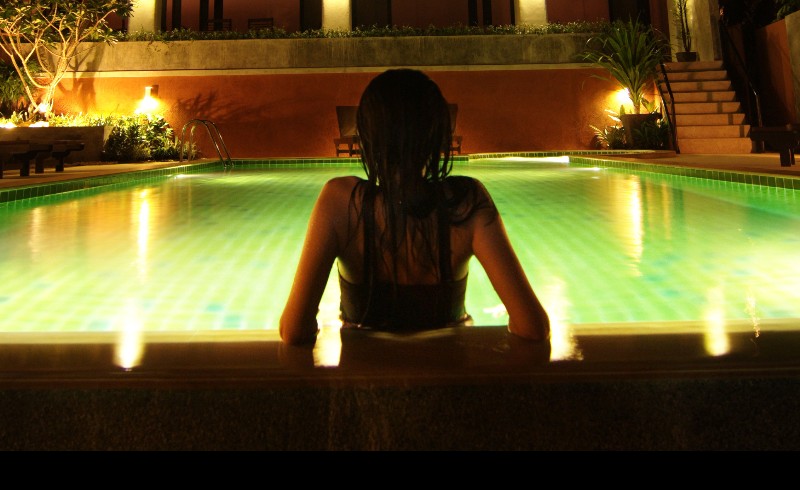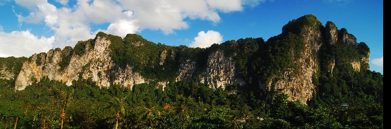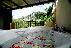 Jungle foliage surrounds the attractive pool, and coconut plams sway majestically against a magnificent backdrop of karst rock faces. Dappled sunlight filters through the trees and shades the pool loungers, of which there are a sufficient number, exccept in peak season, when it is advisable to be up early if you want to be assured of a lounger.