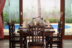 The suites' terraces are relaxing places for parents, who can keep half an eye on their children in the pool, while relaxing with a book on the comfortable and shady terrace. Actually, each unit has 3 terraces, two equipped with a pair of loungers and one equipped with a table and chairs. The terraces are set in a shady, fairly private and lushly planted corner of the resort, and are close to a poolside massage sala. For many families, this equation holds true: