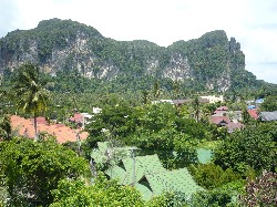 The rooms at the front suffer from a little traffic noise, but those at the back do not. The top (3rd) floor room at the back has a sensational panoramic view of the karst ramparts that separate Ao Nang from Railay and, for those who can be bothered to climb the stairs, is an excellent choice. The sunset view is one of the best in Ao Nang, with the minarets of Ao Nang's newest mosque gracefully piercing a blazing sky - it's really something.