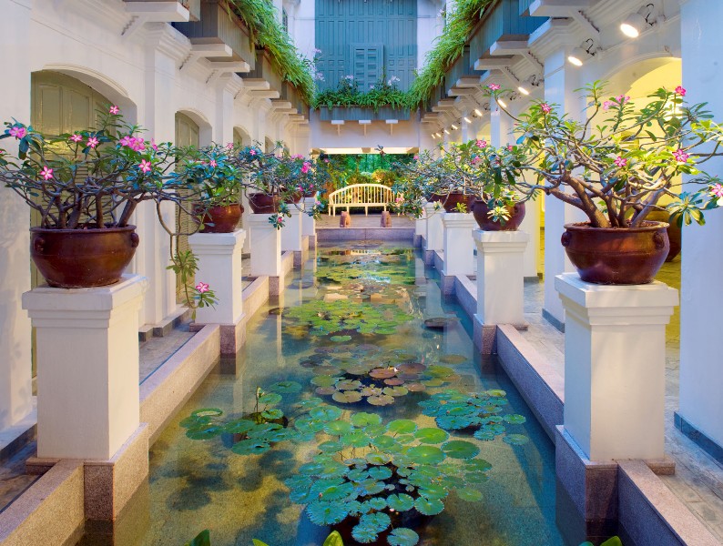 Everywhere the eye wanders in this hotel, whether it be to the thousands of orchids forming floral displays in the lobby, to the stone elephants covered in woven flower blankets, or to the superb artwork adorning the walls, it is greeted with a tableau so harmonious that it impels the viewer to linger.