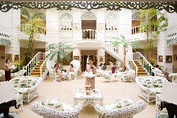 Oh, yes, and one other less well known writer too - that'll be me, Simon, who wrote this review while sitting in the Author's Lounge soaking up the serenity. Although it's a bit like being in a museum, there is none of the stuffiness associated with museums here. Flowers abound, and the sepia photographs of long-dead princes and adventurers peak out behind the fronds of graceful indoor bamboo trees.